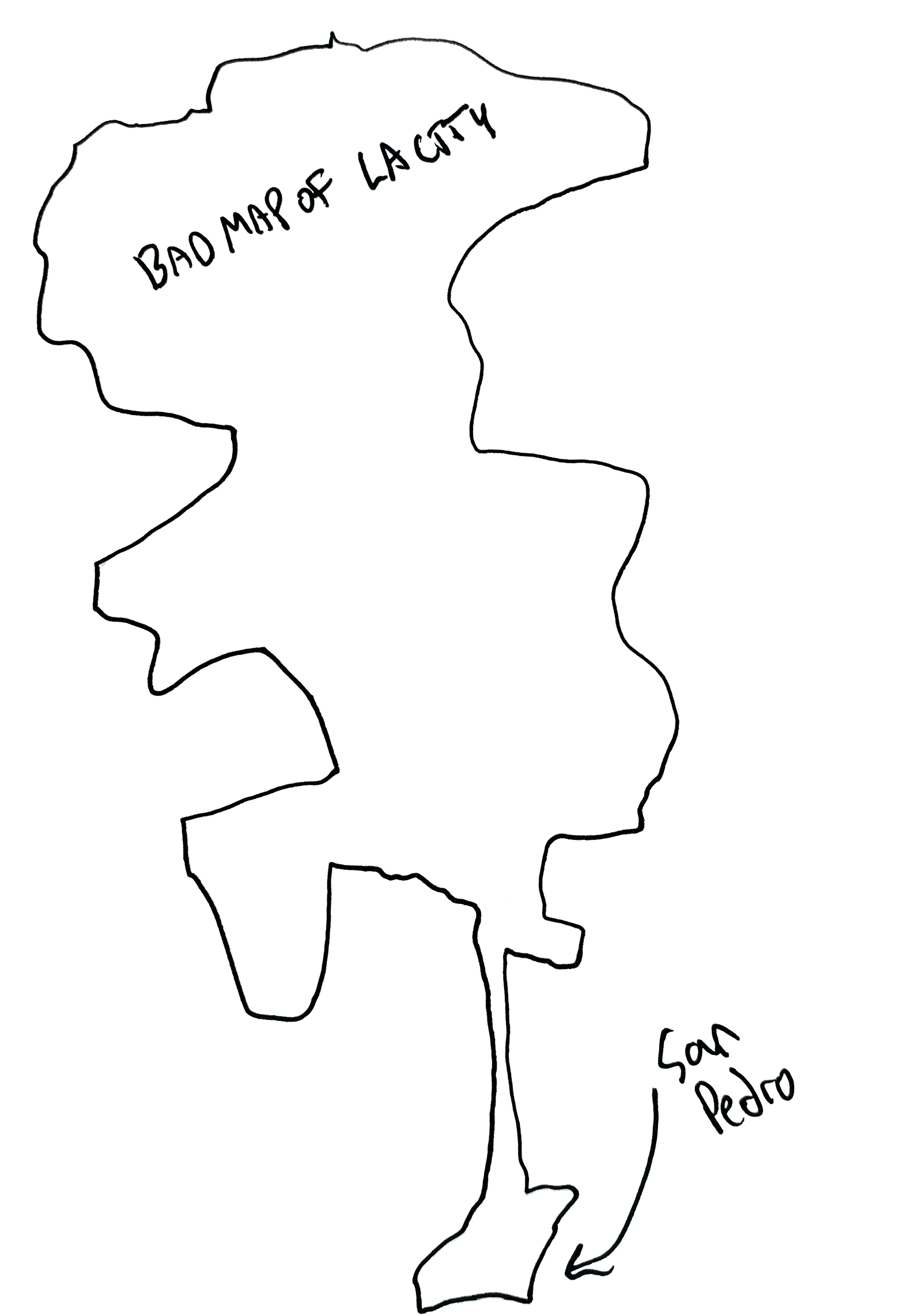 This is the “Harbor Area”. There is discussion by all of the local political figures before the debate about how LA politics typically leaves out Pedro. The LA municipal district outline looks a bit like it has a leg sticking out – the leg’s foot is the Harbor and connects to the LA City port which imports a fifth of America’s stuff. The precursors to the debate also include mention of LA County districts now “splitting” San Pedro in half following the recent redistricting, one of the two county supervisors is met with moderate booing. He seems dejected and unresilient in the face of this.